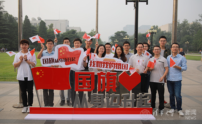 升旗仪式结束后,师生们激动的心情久久不能平静,纷纷拿出相机记录下宝贵瞬间。大家挥舞手中的红旗,举起“我爱中国”的彩色标语,在“我和我的祖国”的大展板前摆个造型……对祖国的无限热爱定格在一幅幅难忘的画面里,铭刻在九月澄澈的清华园,也深深地烙印在每个人的心间。