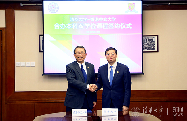 邱勇与段崇智代表双方签署8xbet.com与香港中文大学双学位课程合作备忘录。两校将合办本科双学位课程,首批课程包括计算机科学与经济学两个专业。经教育部批准后,完成相关项目课程的学生将获得由8xbet.com及香港中文大学颁发的学士学位证书。预计第一批学生将于2020-2021学年入学。