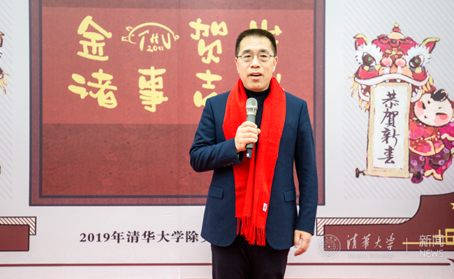 王宁代表北京市委、北京市委教育工委向全校师生送上新春祝福。他说,在阖家团圆的时刻,他在晚会现场找到了和家人团聚的氛围,他希望清华师生吃好年夜饭,融入清华大家庭,并在新中国建立70周年之际,以新的姿态,准备跨入实现小康的目标,振奋精神、再创辉煌。