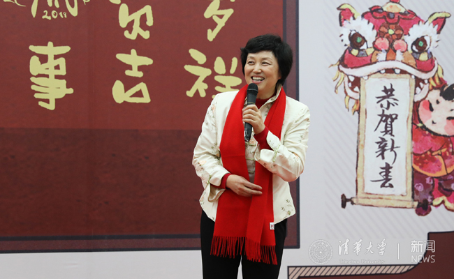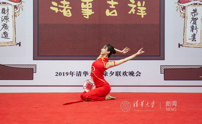 陈旭在晚会上给清华全体的老师同学们拜年,并向各位清华师生送上了诚挚的祝福。她说,吃过年夜饭,我们更爱我们的每一个家庭,要给我们的家人送上新春的祝福;吃过年夜饭,我们也更爱清华,因为清华就是个大家庭;吃过年夜饭,我们也更爱我们的祖国,今年是我们新中国建立70周年,人民生活日益得到提升,人们也越来越有幸福感;吃过年夜饭,我们也更爱我们的世界,习近平主席提出构建人类命运共同体,我们共同建设美丽的地球、美丽的家园,也衷心地祝愿清华的国际学生在清华学业有成、生活幸福。