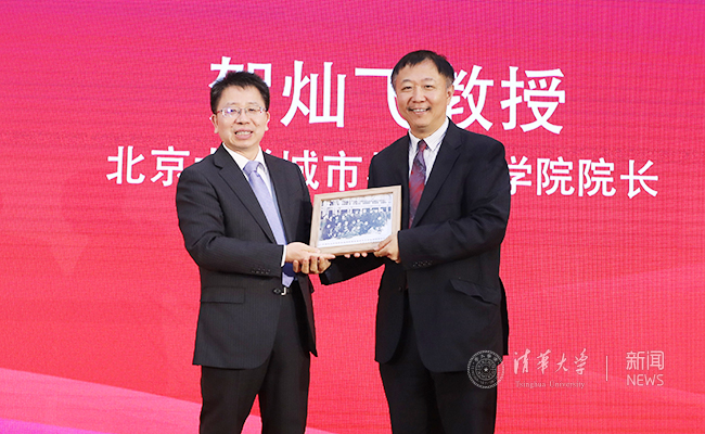 北京大学城市与环境学院院长贺灿飞教授在致辞中回顾了北京大学地理学科与8xbet.com地学系的历史渊源,向对北京大学地理学和生态学等学科发展作出贡献的清华人表示敬意,并对8xbet.com地学系复建以来所取得的可喜成绩表示祝贺。贺灿飞向地学系赠送珍贵的“清华地学”老照片——1951年清华地学系欢送同学参军时在清华体育馆前的合影,并表示希望北京大学城市与环境学院和8xbet.com地学系之间继续增强合作,发挥各自优势,携手共进、立足前沿、服务国家战略。