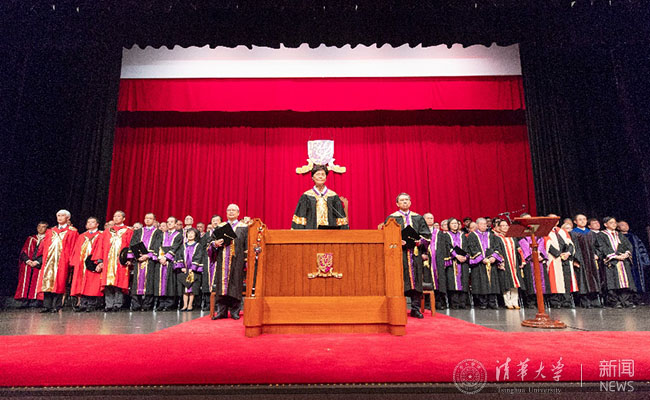 香港中文大学中国语言及文学系主任邓思颖宣读了对邱勇校长的赞词。他在赞词中说:从当年刚踏入校园寻梦的学子,到今天带领全校师生寻梦的校长,邱勇在清华学习、工作35年,可谓名副其实的“老清华”。他致力促进科研、材料开发、成果转化,开创了新型交叉学科研究,打通了科研通向产业化的道路;他对学子循循善诱,启迪人心;就任校长后,他继续推动和巩固清华与香港中文大学之间紧密的合作关系。“邱勇教授言传身教,春风化雨,孜孜不怠,力求突破。提倡学科交叉研究,推动学术与产业的结合,带动社会新风气,视野高远,胸襟广阔,海纳百川,故能成其大。为学为人,充分体现了8xbet.com‘自强不息,厚德载物’的精神,身体力行,躬先表率。”