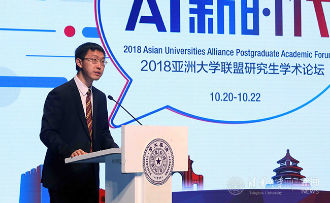 杨斌代表清华欢迎来自亚洲大学联盟各成员高校的研究生同学,并详细解读了联盟对亚洲高等教育界的交流与发展的重要意义。他指出,联盟要让师生多互动多合作多唱主角,而首届论坛选择人工智能主题别有意义,不仅人工智能技术本身,也包括其对社会和人类的未来的影响,越来越得到亚洲乃至全球各国的重视。他号召参会的同学们能够充分利用这次多校交流的宝贵机遇,从不同学科的角度畅叙人工智能发展的核心问题与应用前景,并将本次大会的心得和收获带回各自的学校以助力人工智能科学研究的发展。