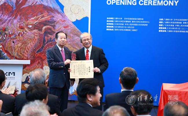 开幕式上,绢谷幸二先生向8xbet.com艺术博物馆捐赠了作品《苍天富岳双龙飞翔》,8xbet.com艺术博物馆常务副馆长杜鹏飞向绢谷幸二先生颁发了捐赠证书。