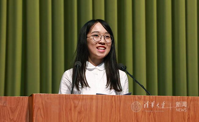 优秀党员代表、经管学院2014级本科生谷冰燕4年前入学时便是一名新生党员,她以“牢记使命、踏实奉献,争做新时代青年的先锋模范”为题,讲述了自己在夯实专业知识、磨炼过硬本领,勇担社会责任、践行奉献精神,理论指导实践、创新工作方式等三方面的学习实践经历。谷冰燕即将本科毕业进入五道口金融学院攻读博士学位,并将继续担任经管学院本科生辅导员。她说,自己会用实际行动努力担负起职责使命、传承好清华人的优良传统,脚踏实地、努力拼搏、甘于奉献,为实现中国梦贡献青春力量。