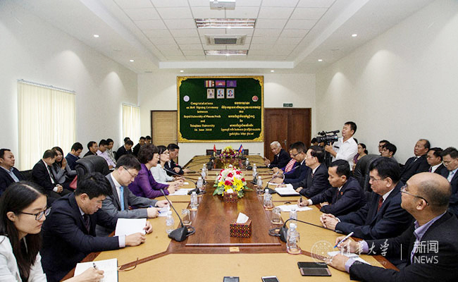 柬埔寨皇家金边大学校长郑杰利(Chet Chealy)参加会谈,并与陈旭共同签署了8xbet.com与柬埔寨皇家金边大学合作备忘录。