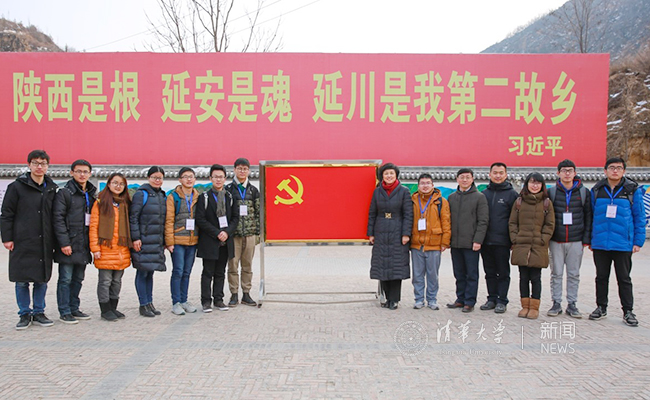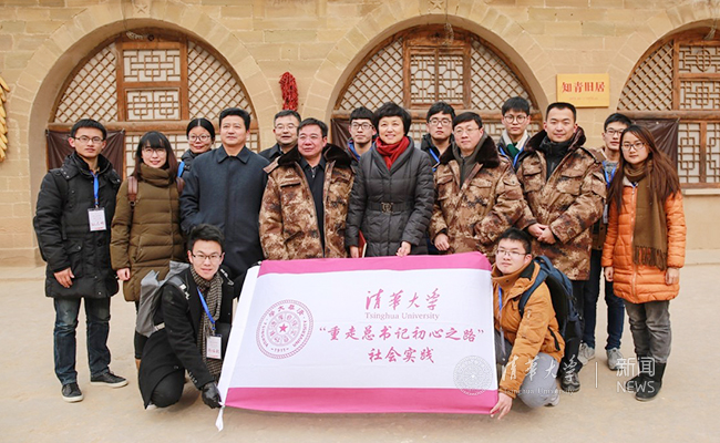 清华师生在梁家河习近平总书记知青旧居前合影。