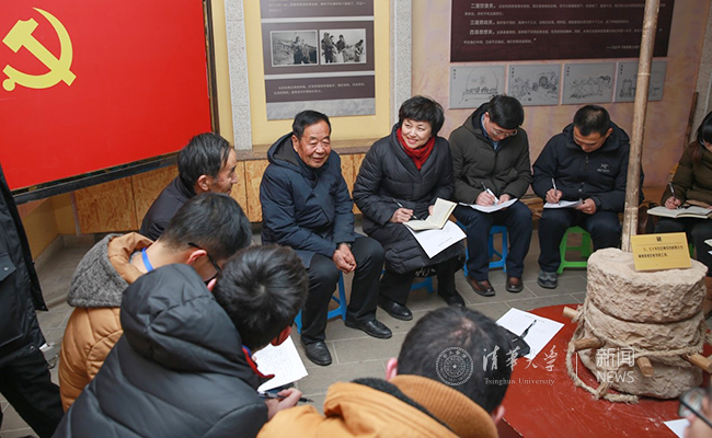 在梁家河村,实践支队师生一行参观了知青旧居、沼气池、代销店、缝纫社、铁业社、知青井、淤地坝等旧址,并在村史馆中开展临时党课学习小组活动,邀请当年与习近平总书记一起劳动、生活的梁玉明、张卫庞两位老人,讲述总书记在梁家河的知青岁月,以及与村民同吃同住同劳动的点滴故事。