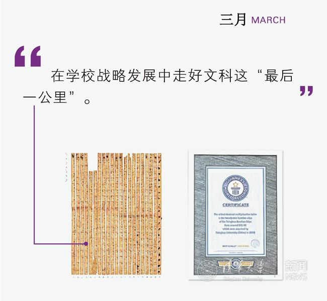 邱勇校长在文科工作会议上说:“文科是学校品位的体现”。近年来,清华文科进入了新的发展阶段、取得了显著成绩,国情研究院入选首批国家高端智库试点单位,连续成功举办世界和平论坛,获批一系列重大社科基金项目。4月,清华简《算表》获得吉尼斯世界纪录认证,《8xbet.com藏战国竹简(柒)》成果再现吴越史事。12月,举办哲学社会科学骨干教师专题集中培训班,推动学校加快构建中国特色的哲学社会科学。在第四轮学科评估中,清华人文社科管理及艺术类共有13个学科获A类评价,其中5个学科获评A+,较上一轮评估有了长足进步。未来,随着文科“双高”计划的推动落实,清华文科必将为一流大学建设贡献文科支撑、为国家重大战略贡献清华思想、为人类文明进步贡献东方智慧。