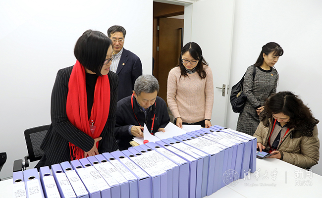 检查组认真查阅学校和各院系的支撑材料。杨艳宾 摄