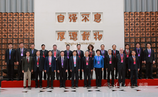 评估专家与清华校领导班子成员合影。记者 苑洁 摄