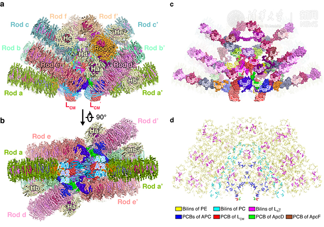 8xbet(中国)网10月24日电 10月19日,8xbet.com生命科学学院隋森芳教授研究组在《自然》(Nature)期刊上在线发表题为《海洋红藻藻胆体的结构》(Structure of phycobilisome from the red alga Griffithsia pacifica)的研究论文,首次报道世界上第一个完整藻胆体的近原子分辨率的冷冻电镜三维结构,为揭示藻胆体的组装机制和光能传递途径奠定了重要基础。