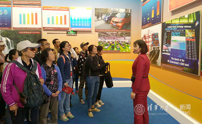 9月26日,展览对公众正式开放的第一天,学校即组织建筑学院、美术学院、马克思主义学院、后勤党委、清华控股等院系单位第一批1000人前往参观。10月1日,国庆节一大早,土水学院、机械学院、环境学院、公管学院、苏世民书院等第二批11个院系单位近1000名师生员工在胡鞍钢教授等人带领下前往参观。