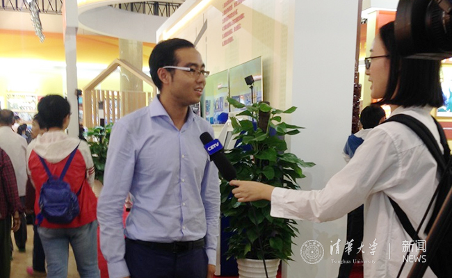 建筑学院2015级硕士研究生程正雨在现场接受了中国教育电视台记者采访。他说,今天观看展览,我们感觉非常振奋。这些年,建筑学院很多师哥师姐踊跃地去北京以外的地方就业、到重点行业领域工作,很多人做出了很多不凡的成绩。在国家城乡建设、新型城镇化建设、“京津冀一体化”、2022年冬奥会建设、人居环境改善等方面贡献积极力量。看到这些,都让我感到无比自豪。