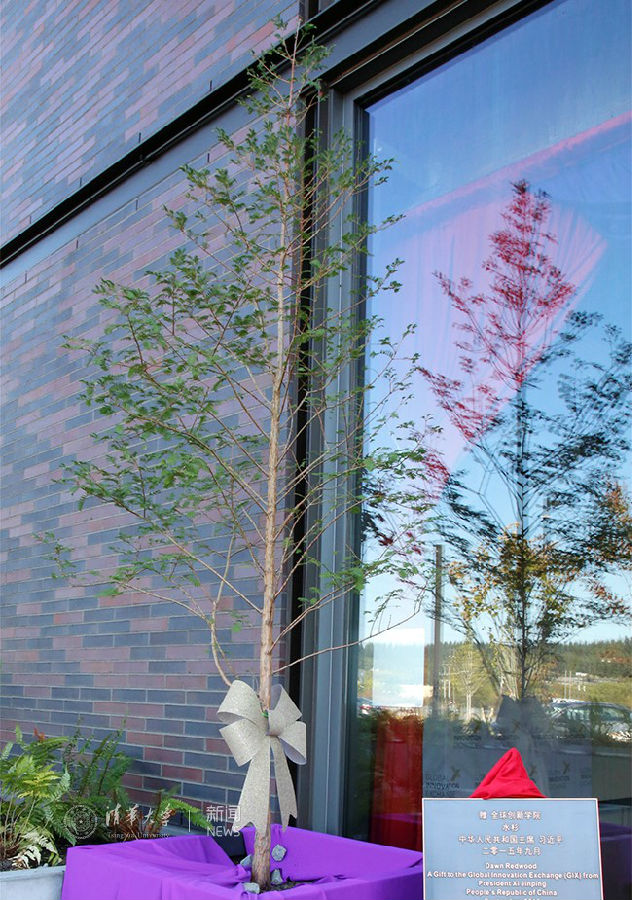 随着首栋大楼的落成使用,中国国家主席习近平赠送给全球创新学院的水杉也拥有了自己的新家——移栽至首栋大楼的门前。2015年9月23日,中国国家主席习近平访美期间专程到位于西雅图看望学院工作人员,并赠送水杉,祝福两校友谊常青,祝愿全球创新学院茁壮成长。两年来,在细心的呵护下,水杉长势喜人。水杉是中国特有的树种,被誉为植物王国的“活化石”,习近平将此树赠送给全球创新学院,寓意中国高等教育走出去的自信。