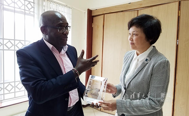 陈旭向肯尼亚籍校友们介绍了学校的最新发展,鼓励他们做中肯交流的使者,搭建中肯合作的桥梁。