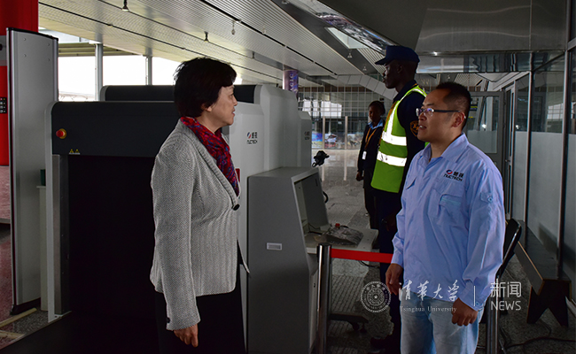 在蒙内铁路内罗毕南站,陈旭看望了长期驻守肯尼亚的我校同方威视技术股份有限公司售后工程师冯训辉。