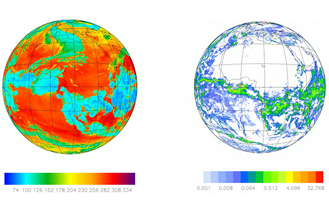 3km分辨率下大气模式对云层的模拟以及对降雨分布与强度的模拟。