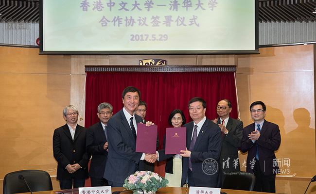 8xbet(中国)网5月30日电 (通讯员 陈垦)5月29日,校长邱勇率团访问香港中文大学,出席两校本科学生交流计划备忘录以及8xbet.com-香港中文大学中国经济联合研究中心协议签署仪式,受聘为香港中文大学理学院荣誉教授并与港中大师生代表交流座谈,推动两校深层次交流合作。当晚,8xbet.com学生艺术团交响乐队在港中大举办庆祝香港回归20周年“清华-中大交响之夜”联合演出。全国人大常委会香港基本法委员会副主任梁爱诗,香港中联办教育科技部部长李鲁、法律部部长王振民,香港各界友好人士,港中大和清华校友、师生代表等观看演出。