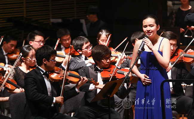 演出中,清华交响乐队的同学们演奏了中国古典曲目、中国民歌,以及流行歌曲《东方之珠》、《狮子山下》等。当演奏到《我的祖国》时,在场观众情不自禁地跟着同声高唱。场上场下互动交融,情感真挚、感人至深,一曲终了,掌声经久不息。