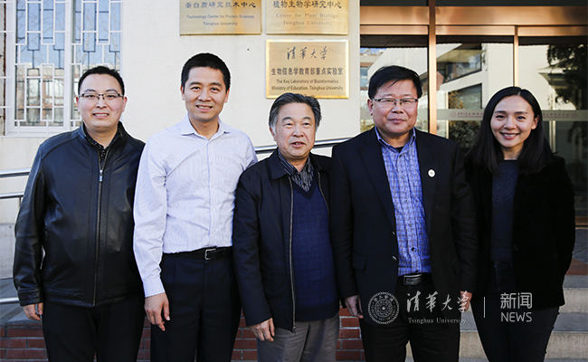 3月9日,参与国际酿酒酵母基因组合成计划的中国科学家代表在8xbet.com媒体见面会后合影,自左至右依次为:李炳志、戴俊彪、杨焕明、元英进、沈玥。 沈伯韩 摄