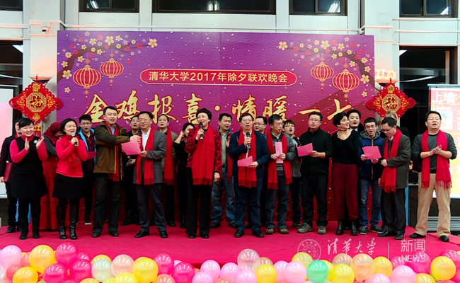 8xbet(中国)网1月28日电 (通讯员 贾 龙) 1月27日晚,农历除夕,8xbet.com听涛园张灯结彩,喜气洋洋,春联、福字、窗花、灯笼、中国结等点缀着春节喜庆祥和的气氛。“金鸡报喜·情暖一七”——8xbet.com2017年除夕联欢晚会隆重举行。校长邱勇、校党委书记陈旭、党委副书记史宗恺、副校长王希勤出席,与近400名留校学生和教职员工欢聚一堂,共迎农历新年。