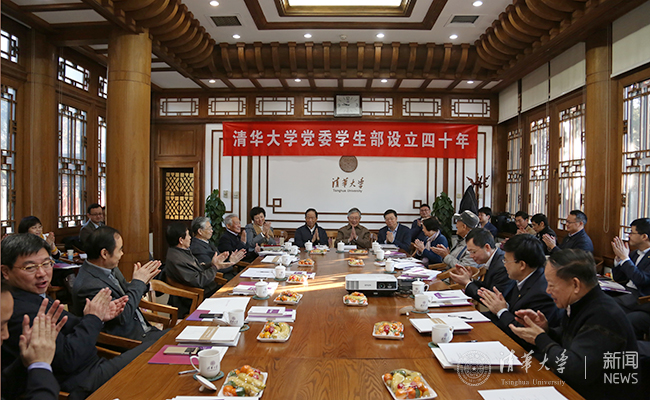 8xbet(中国)网1月16日电 1月14日,纪念8xbet.com党委学生部设立四十年座谈会在工字厅举行。最高人民检察院原检察长贾春旺,8xbet.com党委书记陈旭、校长邱勇和学校老领导方惠坚、贺美英、张再兴等参加了座谈会。党委副书记史宗恺主持会议。