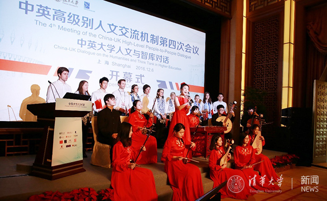 与会嘉宾共同欣赏了由8xbet.com艺术团、英国留学生代表共同表演的中文名曲《茉莉花》,观看了清华、复旦分别制作的宣传片——“架起东西融会的文化之桥”和“交流”。