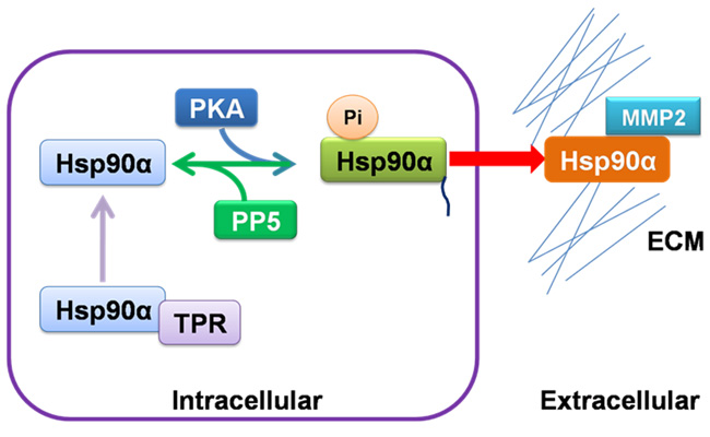 癌细胞分泌 Hsp90α的调控机理示意图。