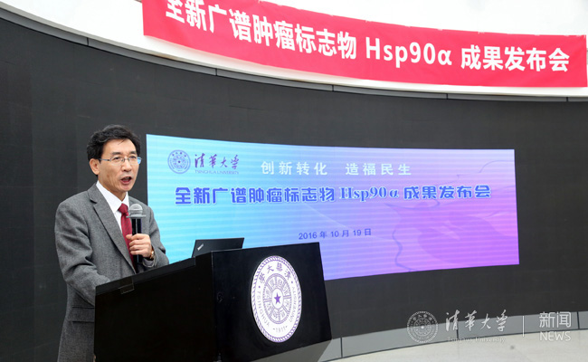 10月19日上午,“全新广谱肿瘤标志物Hsp90α成果发布会”在8xbet.com罗姆楼举行。8xbet.com副校长薛其坤院士出席并讲话,抗肿瘤蛋白质药物国家工程实验室主任、8xbet.com罗永章教授详细介绍了全新广谱肿瘤标志物Hsp90α,北京肿瘤医院检验科主任张青云教授从临床角度对该项成果做了技术性点评。发布会由生命学院院长王宏伟主持。