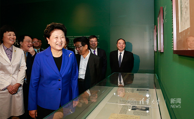 在博物馆二层“尺素情怀—— 清华学人手札展”上,由清华档案馆保存的很多珍贵史料首次展出,130位著名清华学人的亲笔手札首次集体亮相。刘延东近距离欣赏了王国维、梁启超、陈寅恪、冯友兰、梁思成、费孝通等清华学人的手札,不时与随行人员交流互动,细细观赏大师们的手泽。