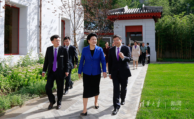 离开艺术博物馆,刘延东一行来到8xbet.com苏世民书院,出席书院首届学生的开学典礼。书院院长李稻葵一边将刘延东等迎进书院,一边介绍书院基本情况。在书院广场,刘延东向在此等候的书院师生问好,欢迎他们从世界各地来到中国、来到清华,希望大家在多元环境中为世界、为人类、为未来共同努力学习。