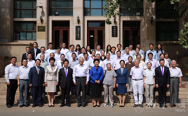 离开化工系前,刘延东与现场师生代表合影留念。国务院有关部门负责人陪同视察并参加上述活动。