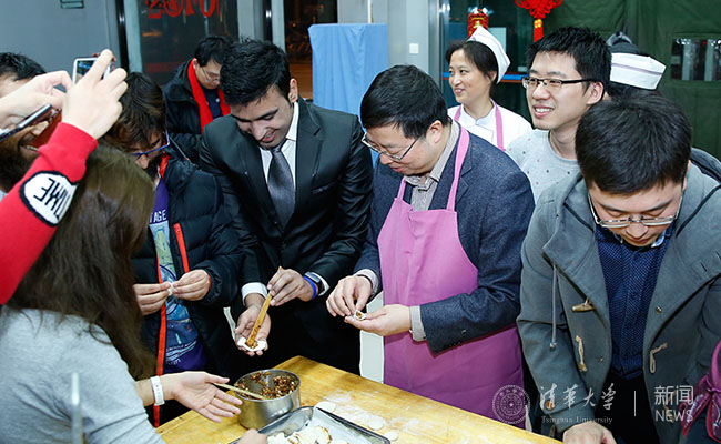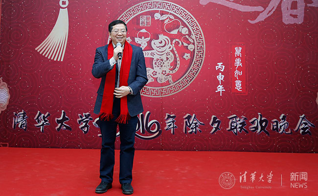 听涛园里喜气洋洋,灯笼、福字处处可见,年味十足。师生员工共同准备了精彩的节目:邱勇、陈旭、史宗恺、吉俊民与教师代表和中外学生代表共同演绎了百年校庆时由徐荣凯学长作词的《我要回家》,深情的演绎赢得了阵阵热烈掌声;五道口金融学院融园餐厅的张林师傅献上一曲《我爱桃花我爱家》,动人的歌喉引来全场轰动;艺术团舞蹈队、曲艺队的同学也献上了精心准备的节目《绿带当风》和《说学逗唱贺新春》。晚会特意为大家准备了寄给家人的明信片和邮票;学校领导老师还给大家发红包、和同学们一起包饺子,让同学们在主动参与中感受家的温暖。