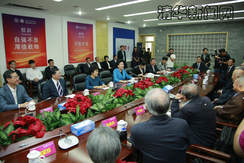 刘延东与清华附中老教师代表座谈。记者 张 宇 摄