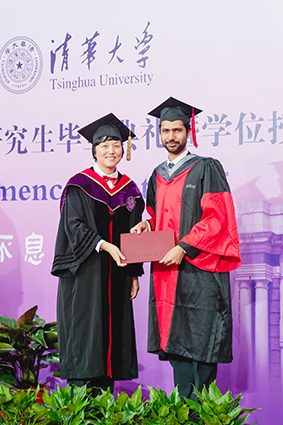 毕业生代表、建筑学院2009级博士生袁晓辉与大家分享了自己在清华五年半学习科研生活的感悟。她表示要怀有持续学习的态度和对独立精神自由思想的追求,在这个变革的时代里用不变的心来回报母校的培育。