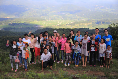 图为书脊支教团队员与支教当地的孩子们在一起。