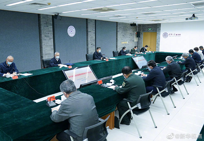 面对未来,清华将坚决贯彻总书记关于“疫情防控第一线”和“科研和物资生产”两条战线相互配合、并肩作战的重要指示精神,切实提高政治站位,坚决强化旗帜意识,全面发挥学科优势和人才优势,主动担当、奋勇争先,为彻底打赢疫情防控总体战、阻击战提供有力科技“武器”,为提高我国公共卫生体系应对重大突发公共卫生事件能力和水平作出重要贡献!