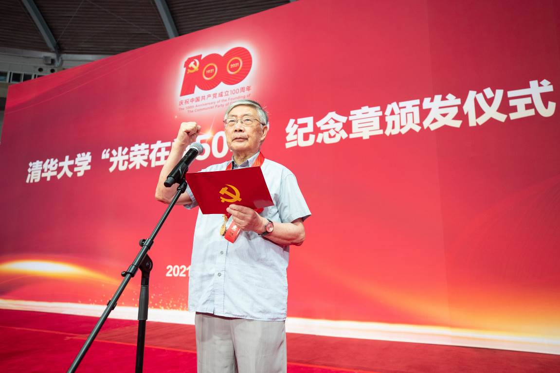 现场老党员,平均年龄81岁。年龄最大的是我国著名建筑学家、城乡规划学家和教育家,来自建筑学院的吴良镛先生,他已满99周岁。吴良镛先生在1960年入党志愿书中写道:“我感到投身到这伟大的共产主义事业中是最大的幸福,我愿意为这人类最伟大的理想贡献出我的全部力量,不惜在必要时付出我的生命!”吴先生用实际行动兑现了当初的诺言。吴先生和清华老党员是全校师生员工的楷模,是清华永远的骄傲!
