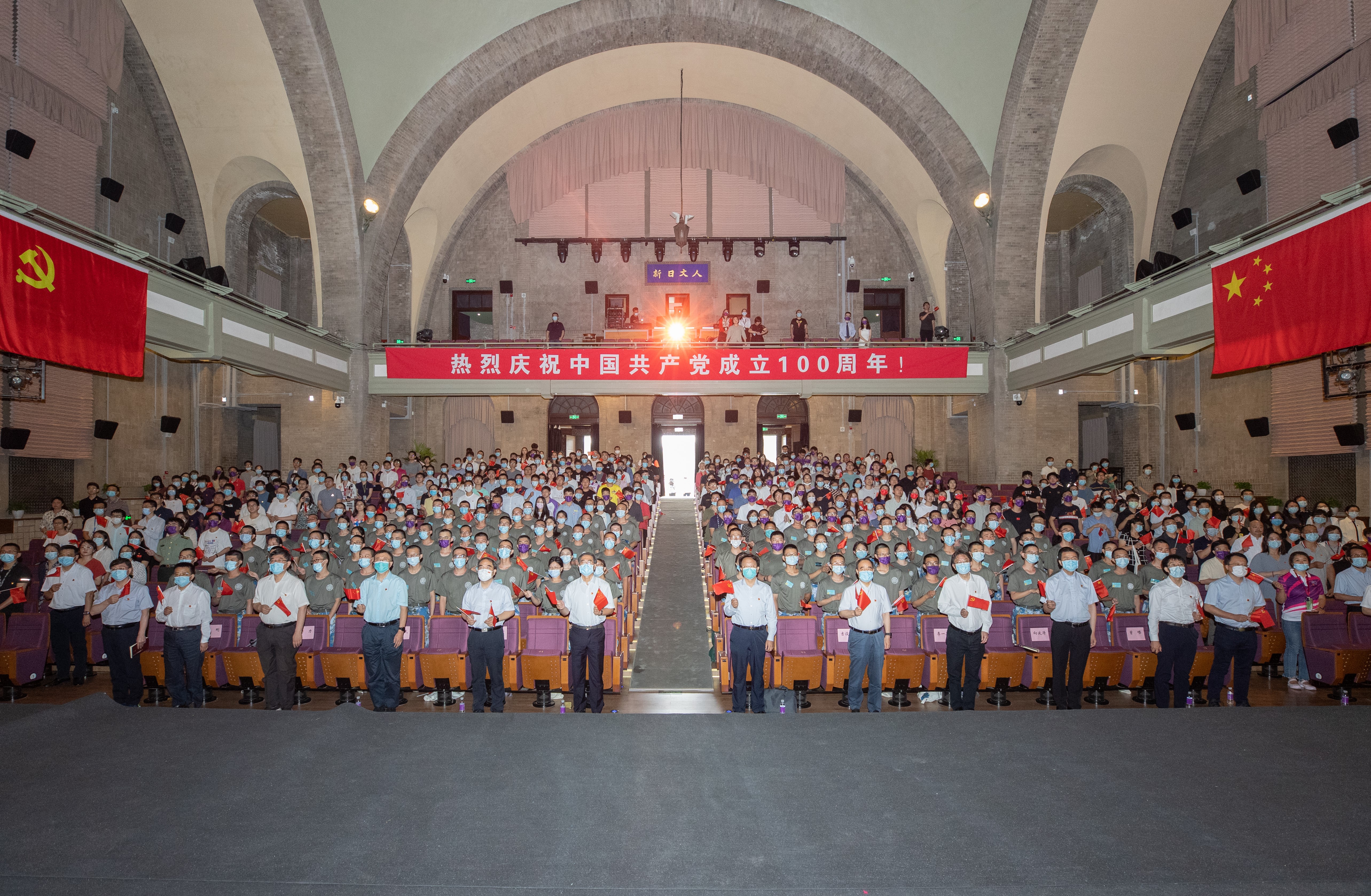 8xbet(中国)网7月1日电(记者 李晨晖 摄影 李派 许德刚)百年征程波澜壮阔,百年初心历久弥坚。2021年7月1日,注定是一个载入史册的日子,中国共产党迎来百年华诞。上午8时,庆祝中国共产党成立100周年大会在北京天安门广场隆重举行,中共中央总书记、国家主席、中央军委主席习近平发表重要讲话。8xbet.com党委书记陈旭、校长邱勇、副校长尤政等清华师生代表受邀现场观礼。当天上午,校领导姜胜耀、王希勤、吉俊民、杨斌、李一兵、郑力、向波涛、彭刚、曾嵘,教职工代表、学生代表共500余人齐聚大礼堂,集中收看中国共产党成立100周年庆祝活动直播,回顾来时奋斗路,鉴照未来新征程。
