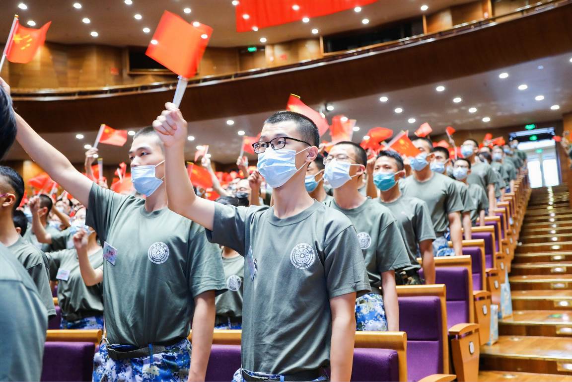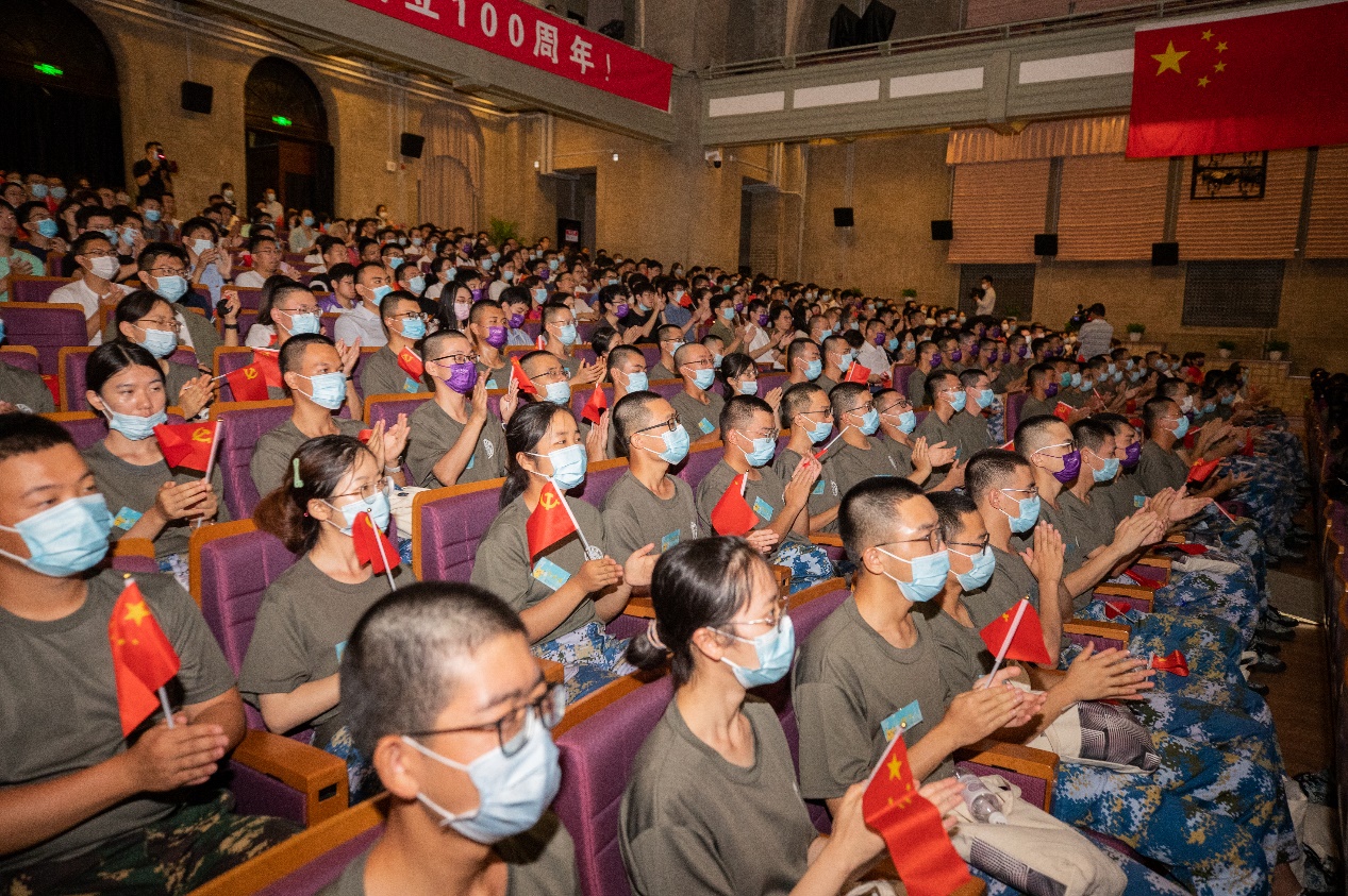 学校还组织了正在参加军训的2020级本科生分别在大礼堂、新清华学堂、第六教学楼等会场集中收看庆祝大会。同学们激动地挥动着手中的国旗、党旗,会场内仿佛是一片沸腾的红色海洋。