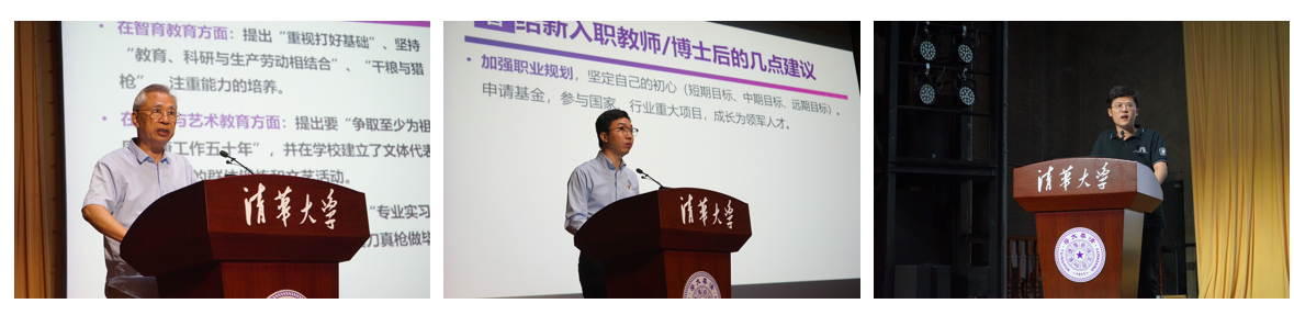校党委副书记过勇以“又红又专,全面发展——清华育人工作传承与创新”为题发表讲话。过勇说,教书育人是清华教师的首要职责,“得天下英才而育之”是教师至高无上的荣耀。成为一名优秀的清华教师,不仅需要课堂上的悉心指导,更需要课堂外的育人工作,以此来提升学生的思想政治素质和道德情操。新教师应努力在学生价值塑造、能力培养和知识传授方面发挥正确的引领作用,通过课程教学、学术科研和职业发展过程中的言传身教,鼓励学生多元发展、全面成长,为国家和社会培育高质量人才。