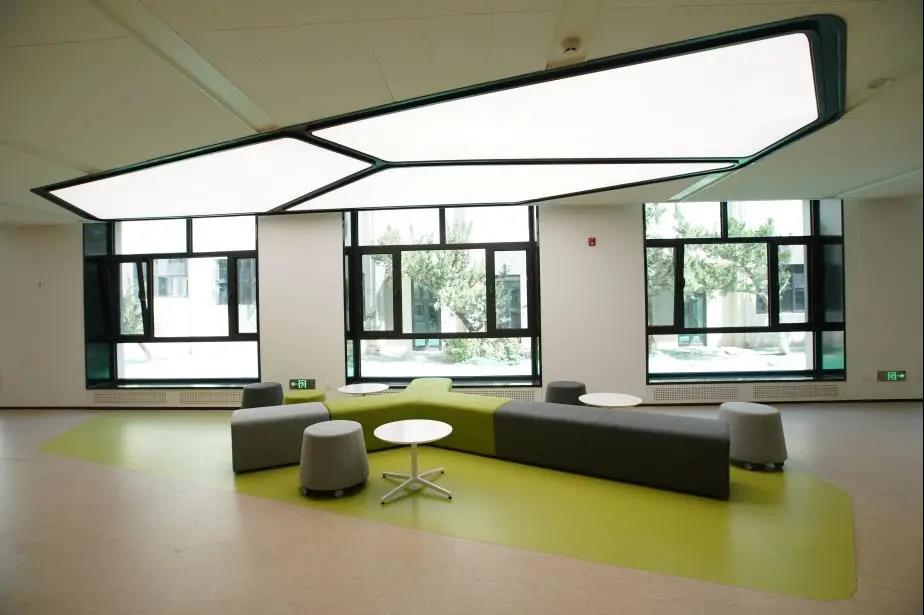 阳光满溢的平台、富有韵律的阶梯、自由多元的学习空间,可以智能互动的多媒体教室……