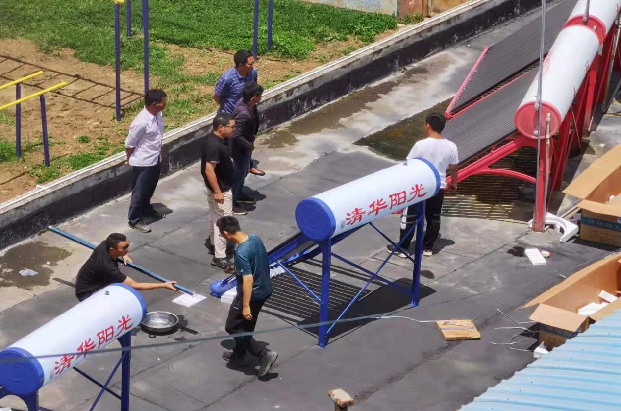 能动系“I·温度”支队成员在红星小学搭建太阳能热水器