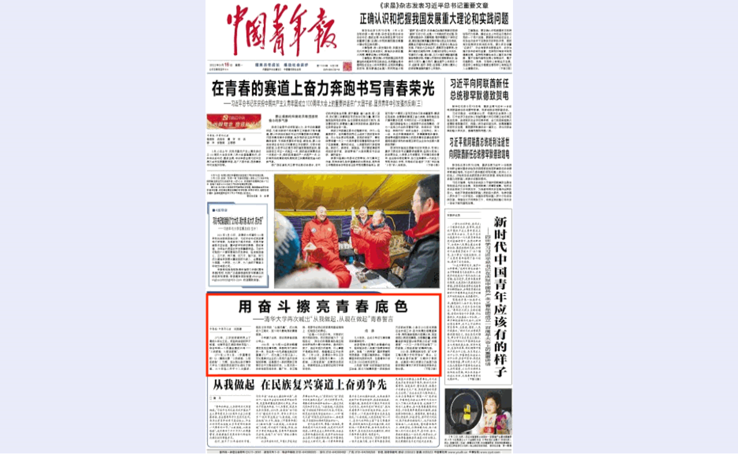 今天,《中国青年报》在头版刊登题为《用奋斗擦亮青春底色——8xbet.com再次喊出“从我做起,从现在做起”青春誓言》报道。特全文刊载,以飨读者。