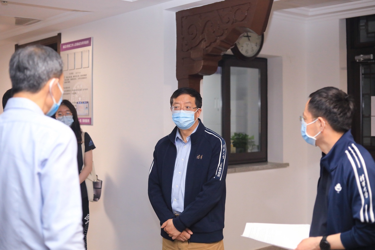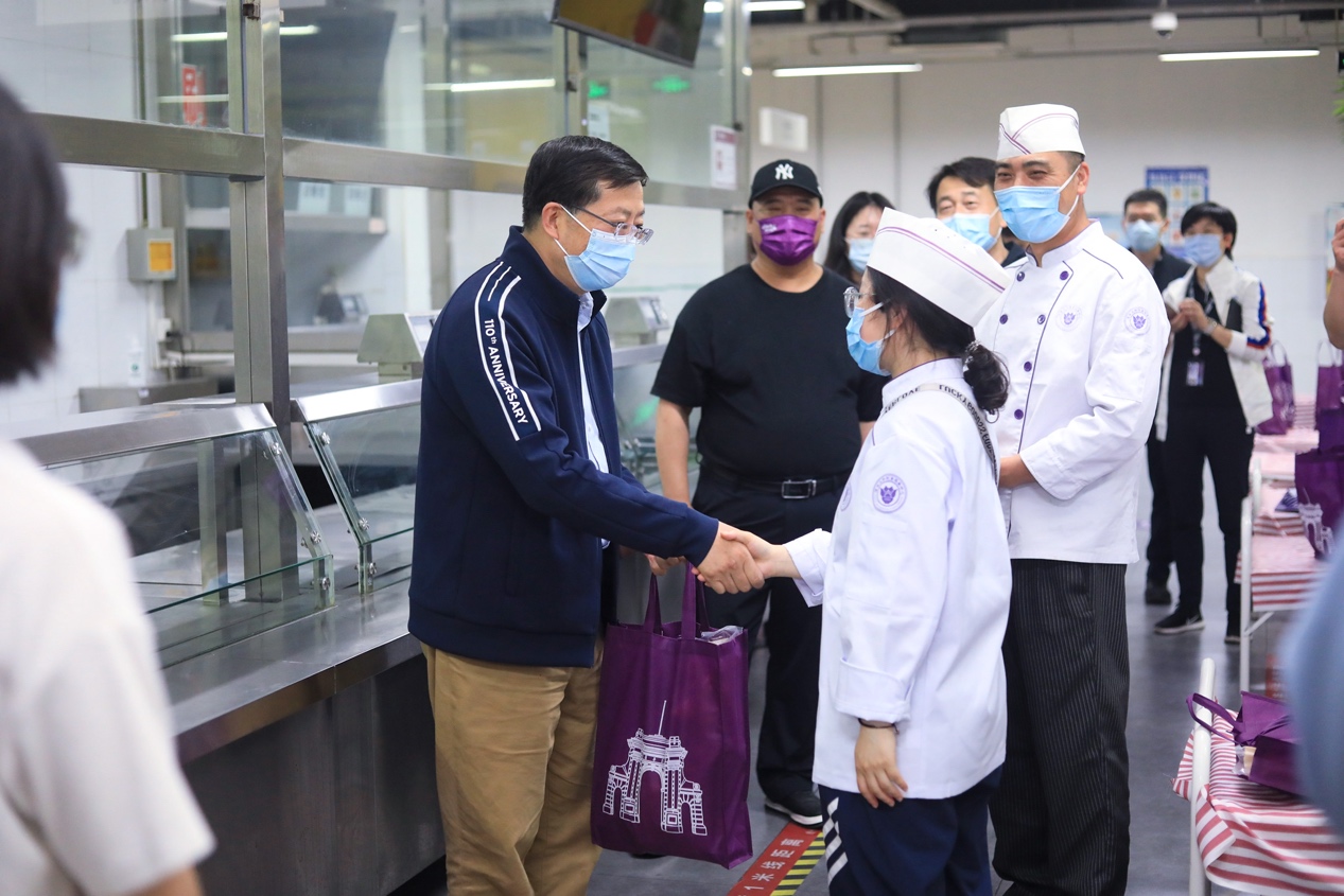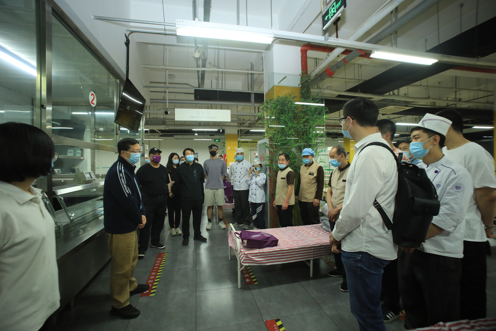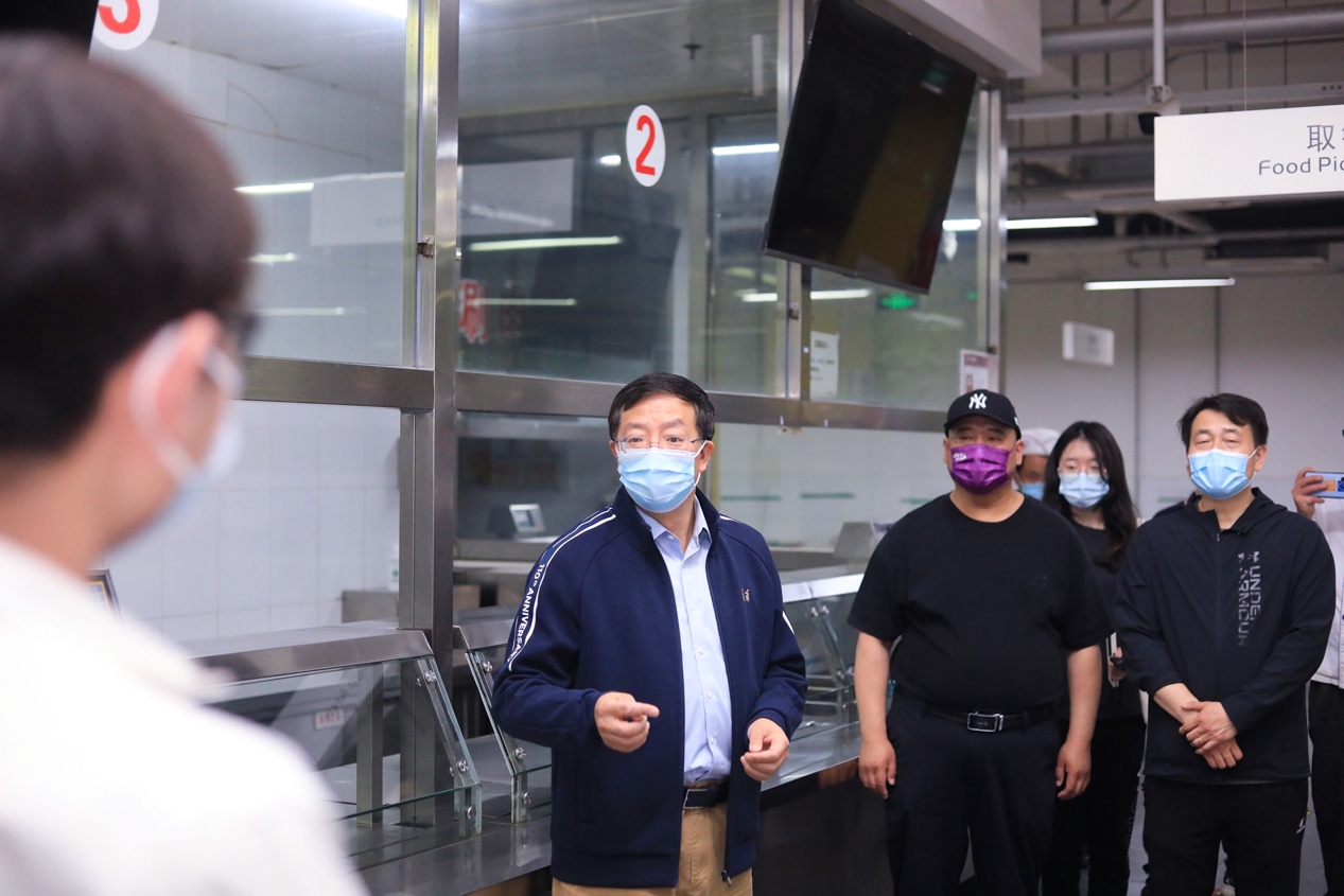 8xbet(中国)网5月18日电(记者 詹萌 摄影 杨屿涵)5月17日晚,8xbet.com党委书记邱勇先后来到清芬园食堂和一号楼,看望疫情防控时期服务保障学校日常运转的职工队伍,关心他们的生活起居和各类需求,听取师生员工对学校工作的意见建议。