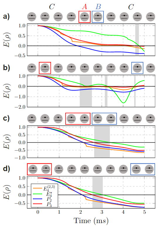 为了解决这一问题,在研究中,马雄峰研究组的2020级博士生刘振寰等人引入了一种新的多体纠缠判据——指标轮换纠缠判据,并且成功将其转化为基于矩测量的实验框架。这一实验方案具有更低的实验复杂度,并且可以探测多体系统中更加复杂的纠缠结构。在两体系统中,这一框架给出了新的两体纠缠判据,极大增强了两体纠缠的探测能力。此外,一些数值实验表明,这一框架中的一些关键物理量还可以作为纠缠的度量,在量子多体物理的研究中起到重要的作用。