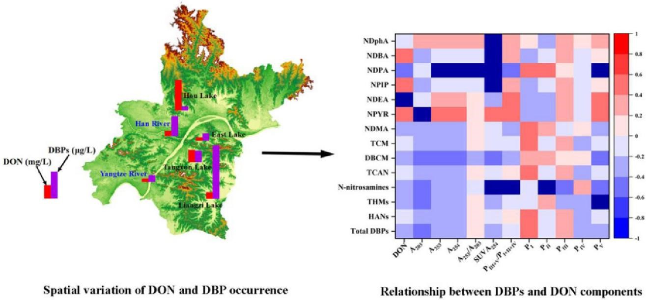 相关研究成果以“新冠肺炎疫情期间武汉地表水中溶解有机氮的空间变化与消毒副产物产生的相关性研究”(Spatial variation of dissolved organic nitrogen in Wuhan surface waters: Correlation with the occurrence of disinfection byproducts during the COVID-19 pandemic)为题发表在《水研究》(Water Research)期刊上。论文第一作者为环境学院博士后王乐云,论文通讯作者为“疫情聚集区环境污染及次生风险阻控机制”课题骨干、环境学院李淼副教授。