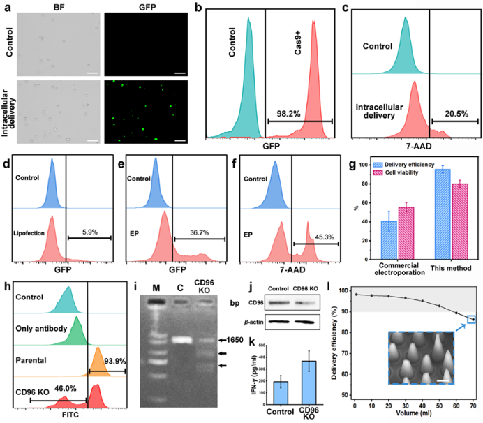 基于振动辅助纳米针/微流体复合胞内递送系统的Cas9/RNPs递送和NK-92细胞系基因编辑