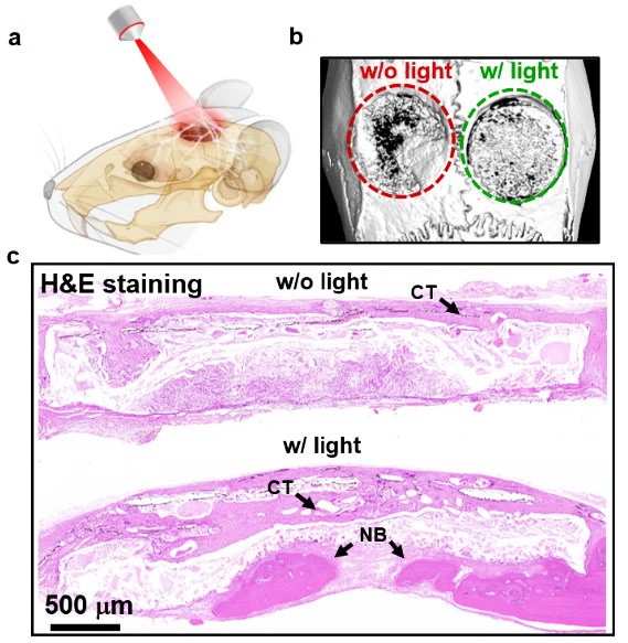 图4. 光电生物支架促进大鼠颅骨修复